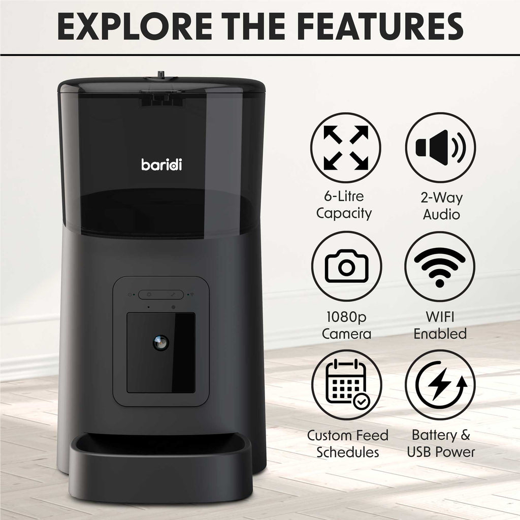 This smart pet feeder offers a practical solution for pet owners who want to ensure their furry companions are well taken care of, even in their absence. With a spacious 6-litre food storage capacity, it minimizes the need for frequent refilling, making it convenient for busy schedules. The interactive two-way audio feature allows you to stay connected with your pet, providing comfort and reassurance through real-time voice communication. For those who like to keep an eye on their pets, the built-in 2MP 1080p camera delivers high-definition video monitoring, ensuring you can watch over your pet, capture special moments, or simply make sure they are safe. Seamlessly integrated with the TUYA smart home ecosystem, controlling feeding schedules or camera functions has never been easier. You can manage it directly from your preferred smart device or voice assistant. Additionally, the feeder allows for customized feeding schedules and portion sizes, helping you maintain your pet’s health by establishing regular meal times and appropriate servings through a user-friendly companion app. This combination of features makes it a thoughtful choice for pet owners prioritizing convenience and care.