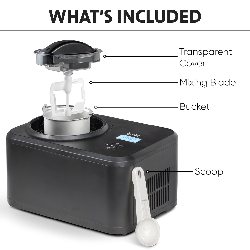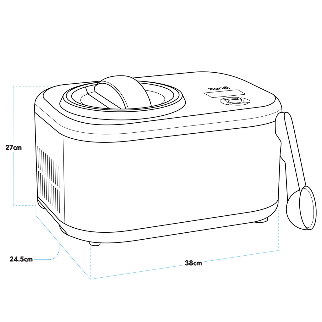 This versatile ice cream maker allows you to enjoy up to 1.5L of homemade ice cream in under an hour, featuring an automatic keep-cool function that maintains your treat at the perfect temperature for an hour after it's ready. Its user-friendly digital controls and clear LCD display let you easily set preparation time and monitor progress, making the process straightforward for anyone, regardless of kitchen expertise. The compact design is ideal for small kitchens, fitting comfortably with dimensions of 380 x 270 x 240mm. Equipped with efficient compressor cooling, the machine offers a temperature range between -18 to -35°C, ensuring your ice cream is perfectly chilled. The non-stick removable bowl simplifies cleaning, saving you time and effort. Not just limited to making ice cream, this appliance also features four functions, including refrigeration, mixing, ice cream, and yogurt modes. This device is perfect for those who need versatility in their kitchen appliances and prefer options. Furthermore, the machine caters to various dietary needs by allowing for dairy-free alternatives such as soy, coconut, or almond milk, enabling you to create lighter, vegan-friendly desserts that everyone can enjoy.