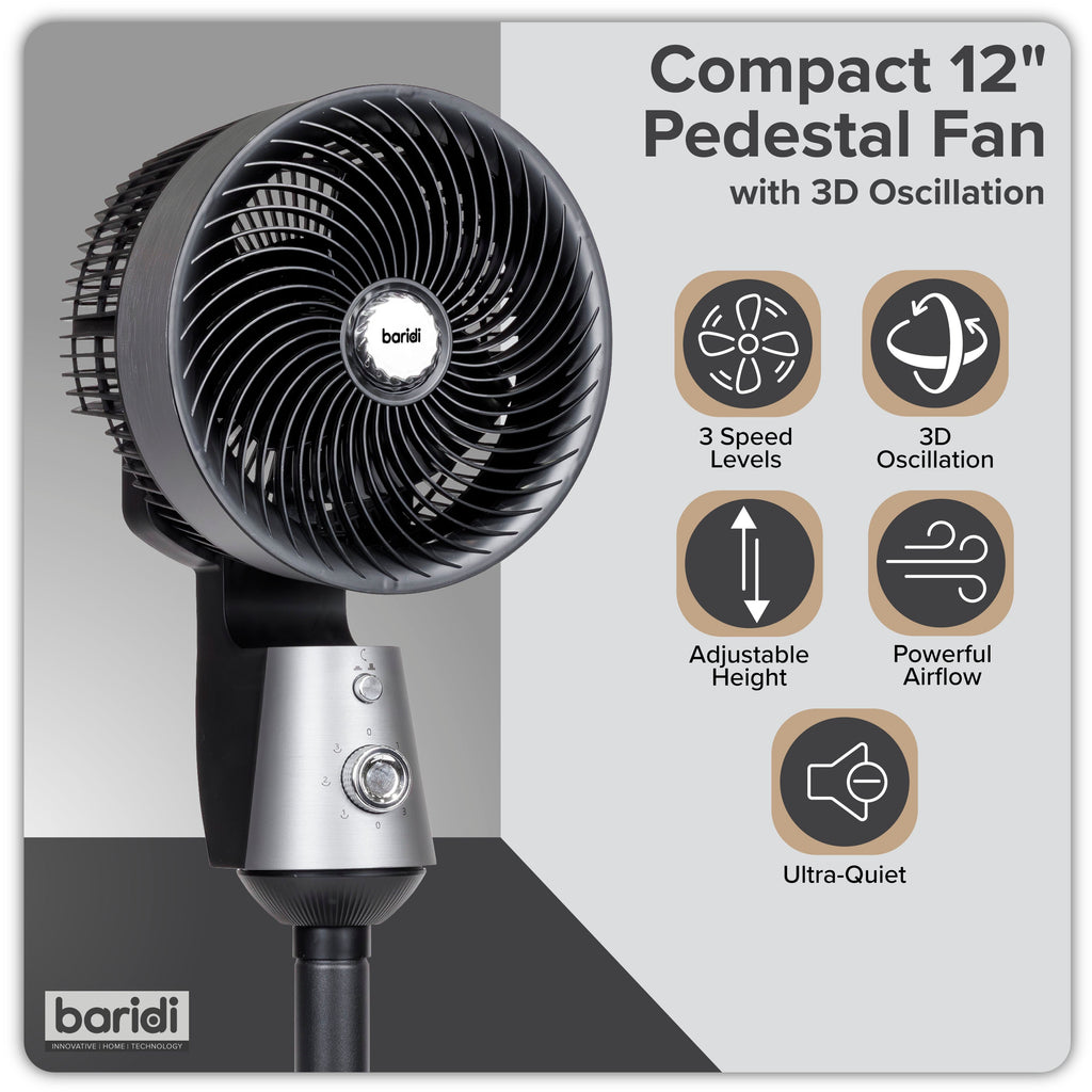 This fan is designed to enhance your comfort with its dynamic air circulation, featuring a 90-degree vertical and horizontal swing that ensures optimal airflow throughout any room. Whether used in a bedroom, office, or living room, it efficiently circulates air to maintain a pleasant environment. Tailor your comfort experience by selecting from three airflow intensity levels, ensuring you get the perfect breeze. This fan's lightweight and contemporary design make it a sleek addition to modern spaces, effortlessly blending with your decor. It's versatile enough to be used all year round; pair it with a heater for efficient warming in winter or with an air conditioner to cool down quickly during hot days. The fan is easy to operate with manual controls, and its compact size of 33 x 33 x 105 cm makes it a practical choice for any space.