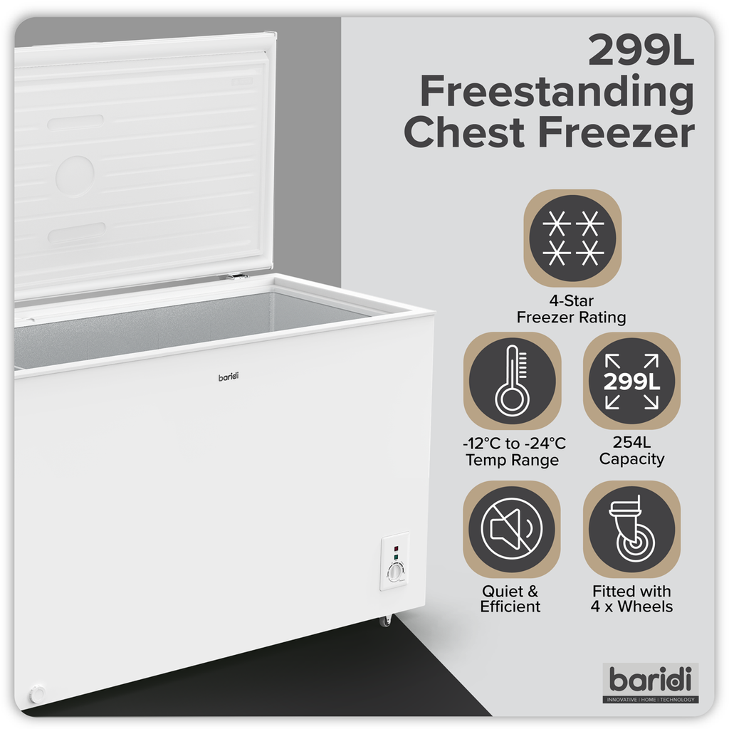 Baridi 299L Freestanding Chest Freezer with Adjustable Thermostat - White - DH260