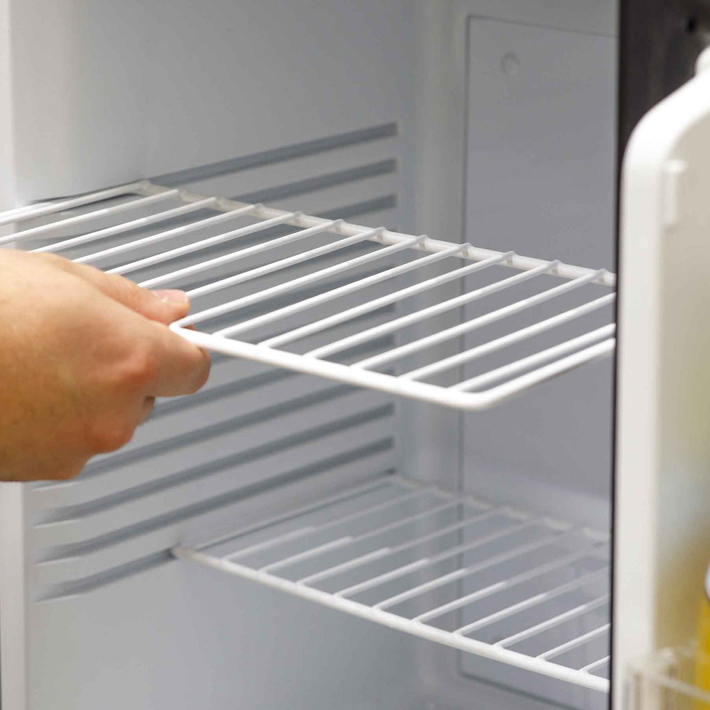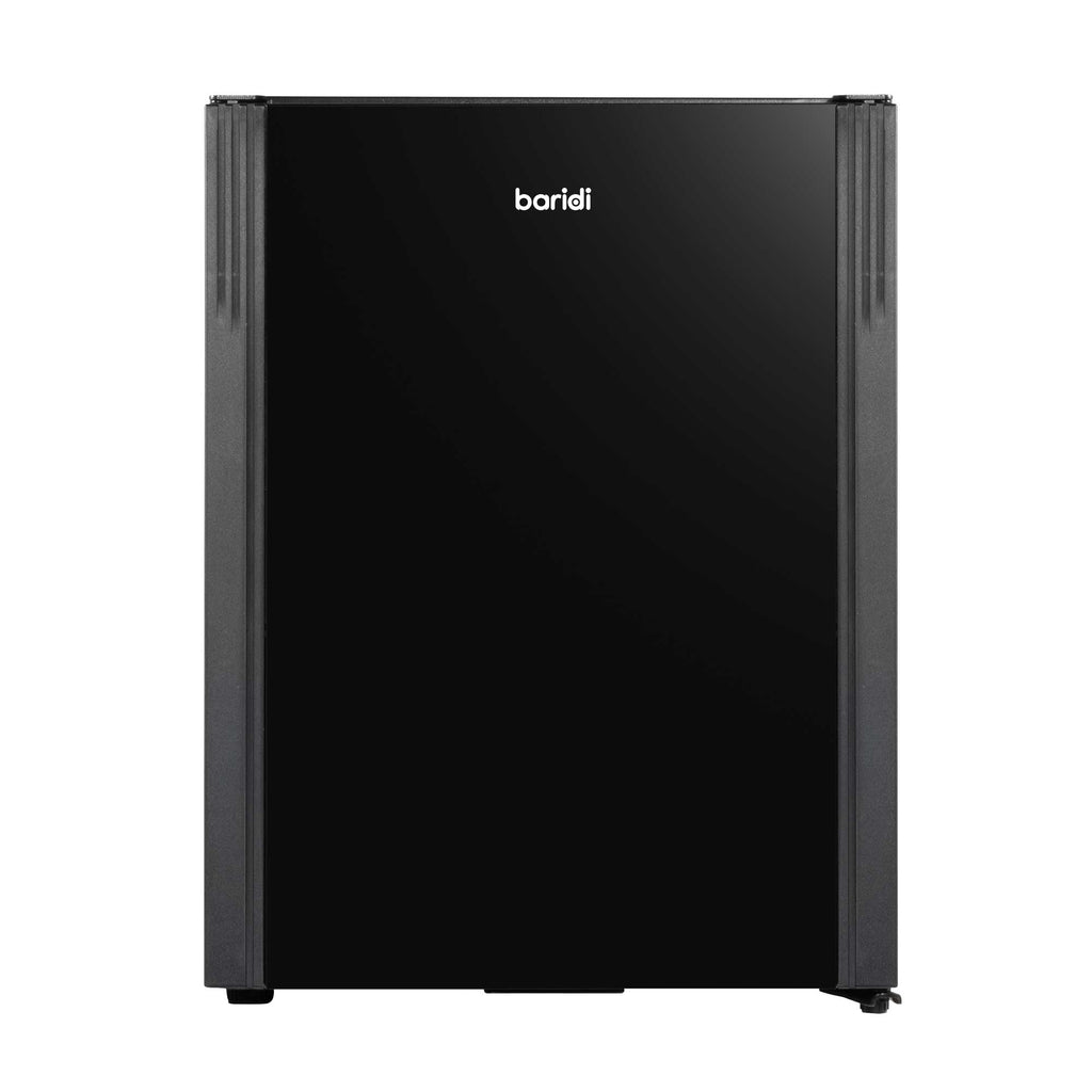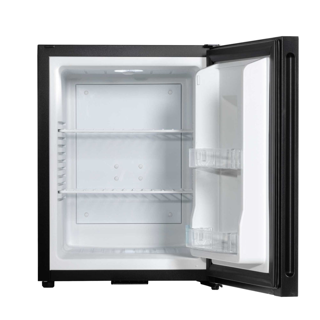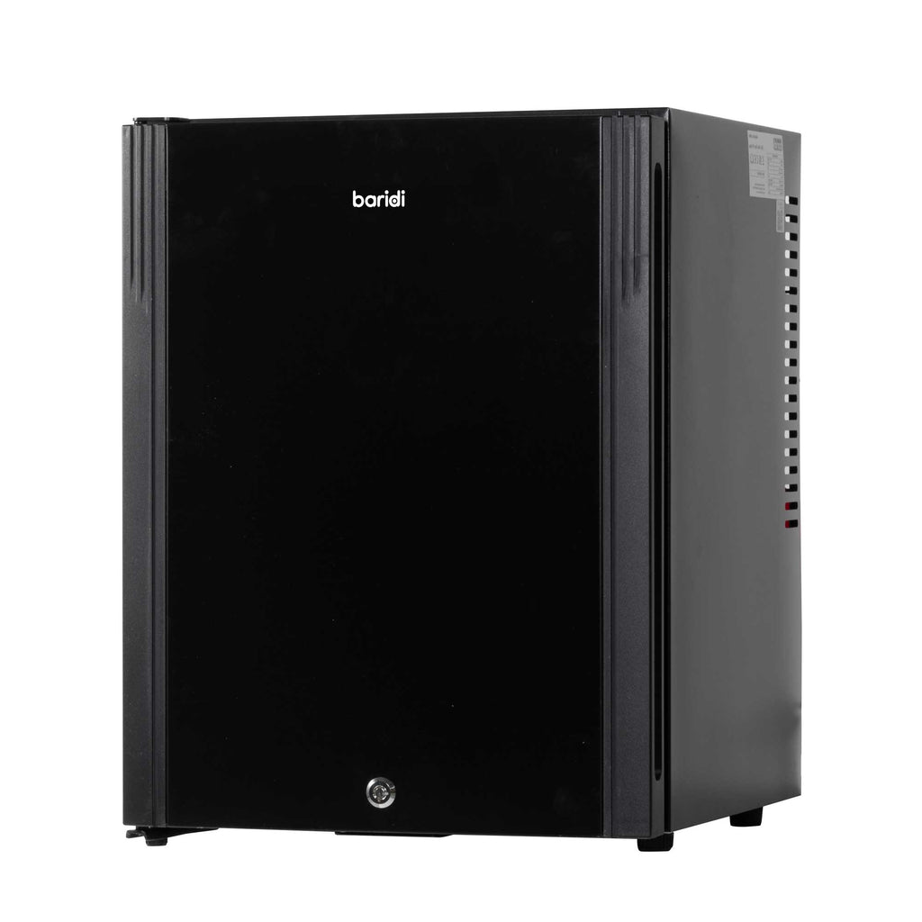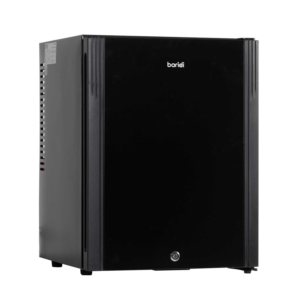 Discover the perfect cooling solution with this compact mini fridge, ideal for a variety of settings, including bedrooms and offices. Its advanced thermoelectric cooling and heat pipe technology ensure a reliable temperature range from 5 to 15°C, keeping your beverages and snacks perfectly chilled. With a near-silent operation at just 25dB, this fridge is discreet enough for quiet environments like guest rooms and B&Bs. Despite its small footprint, it boasts a generous 33-liter capacity, accommodating wine bottles, beer cans, and more. The user-friendly features include an automatic defrost function, making maintenance hassle-free. Additionally, internal LED lighting ensures you can access your items easily, even in low-light settings. The fridge's design includes removable wire shelves for customizable storage and comes equipped with a built-in security lock for peace of mind. With a compact size and customizable installation options, thanks to its reversible door and adjustable feet, it can fit seamlessly into any space. Measuring 405 x 445 x 545mm on the outside, its efficiency is highlighted by a modest annual energy consumption of 140 KWh. This mini fridge combines practicality with convenience, making it a versatile choice for your cooling needs.