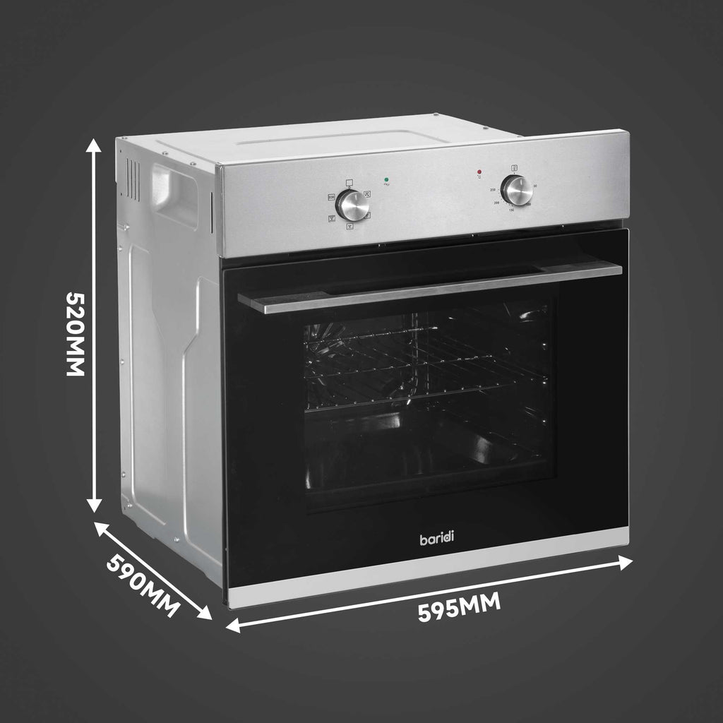 The DH125 oven offers a spacious 55-liter capacity that maintains consistent temperatures to ensure your meals are cooked to perfection. With five versatile functions, including Grill, Bottom Heating, and Defrost modes, it adapts to a variety of cooking needs. The DH128 cooker hood combines energy efficiency and effectiveness, featuring a class B rating that means reduced electricity bills and minimal noise. It operates powerfully with 190 watts, delivering 600 cubic meters per hour of suction to keep your kitchen fresh and free from cooking fumes. Three adjustable fan speeds allow you to customize the ventilation to your liking. Complementing the oven and hood is the DH131 Baridi four-burner ceramic electric hob, equipped with two 1800W and two 1200W heating elements. Each burner can be independently controlled across nine power settings using intuitive touch controls. For added safety, a child lock feature prevents accidental activation. Unlike induction hobs, this 60cm cooker is compatible with all types of cookware, making it versatile for any recipe. Together, these appliances offer a comprehensive solution for efficient and effective cooking and ventilation in your kitchen.