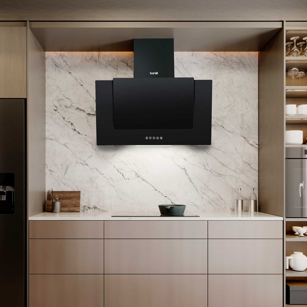 This extractor hood offers an energy-efficient solution that allows you to save on your electricity bills with its class B energy rating. It provides a quieter kitchen environment, thanks to its high efficiency, and features a powerful fan with 65 watts of power and a suction capability of 350 m3/h. You can easily manage kitchen fumes with the hood's adjustable settings, offering three different fan speeds for complete control. Designed to be both elegant and modern, this wall-mounted hood adds a touch of style to any kitchen. It comes with two carbon filters to ensure clean air and maintain freshness in your cooking space. Its standard chimney style, measuring 60 cm, fits most cookers and hobs, making it a versatile choice for many kitchens. Professional installation by a qualified electrician is required, as no ducting kit is supplied with the product.