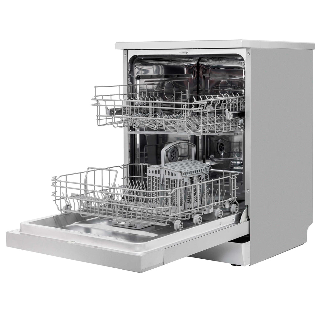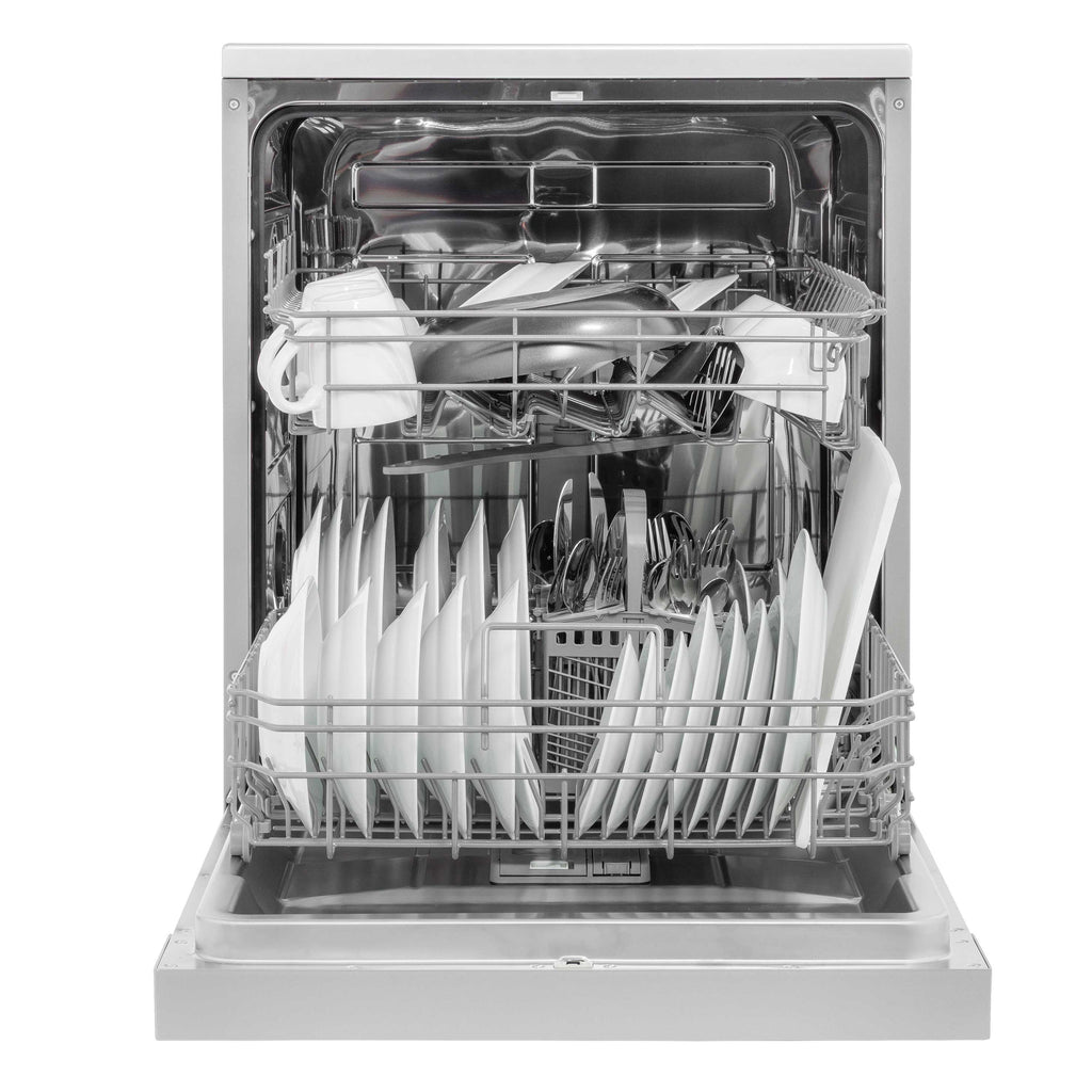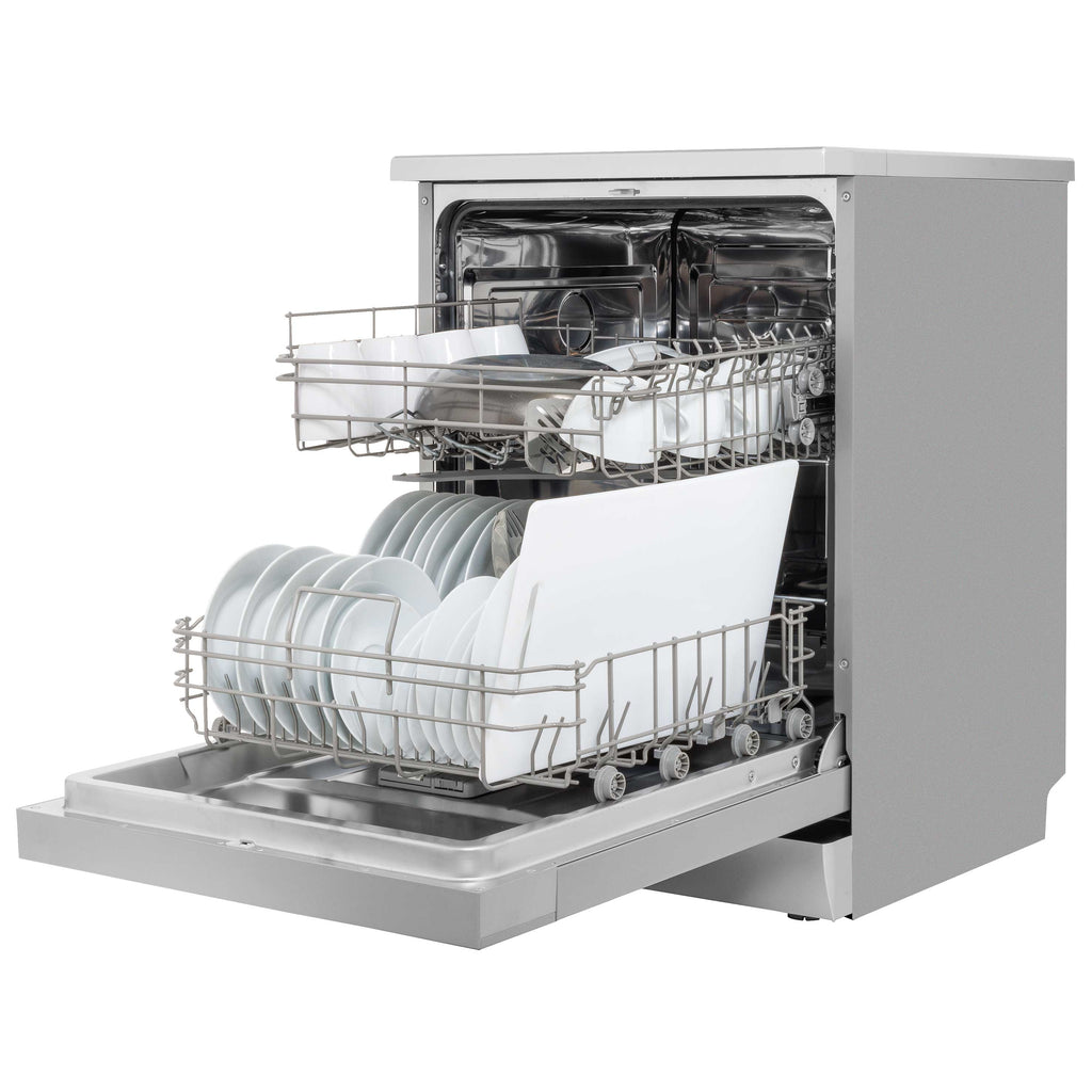 The 60cm freestanding dishwasher is designed to seamlessly fit into a standard cupboard space, making it an ideal addition to your kitchen without the hassle of remodeling. It comfortably accommodates larger kitchen essentials like pots and pans, with the capacity to hold plates up to 30cm around the edges, while plates up to 25cm can fit beneath the spray arms. Offering six wash programs, this dishwasher caters to various cleaning needs, from a Rapid Wash that gets your dishes spotless in just 60 minutes to an Intensive setting that tackles stubborn food residues and grease. Safety is a priority with its child lock system, which prevents accidental openings during a cycle, and a pause function allows you to stop the wash and open the door safely. Installation is straightforward with the option to remove the top for placement under your countertop, and the adjustable levelling feet ensure stability on any kitchen floor. With dimensions of 598 x 600 x 845mm, this dishwasher is both practical and efficient for your cooking space.