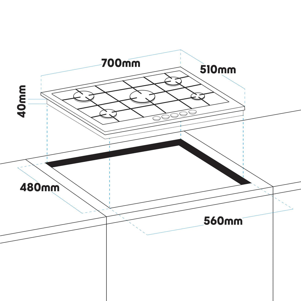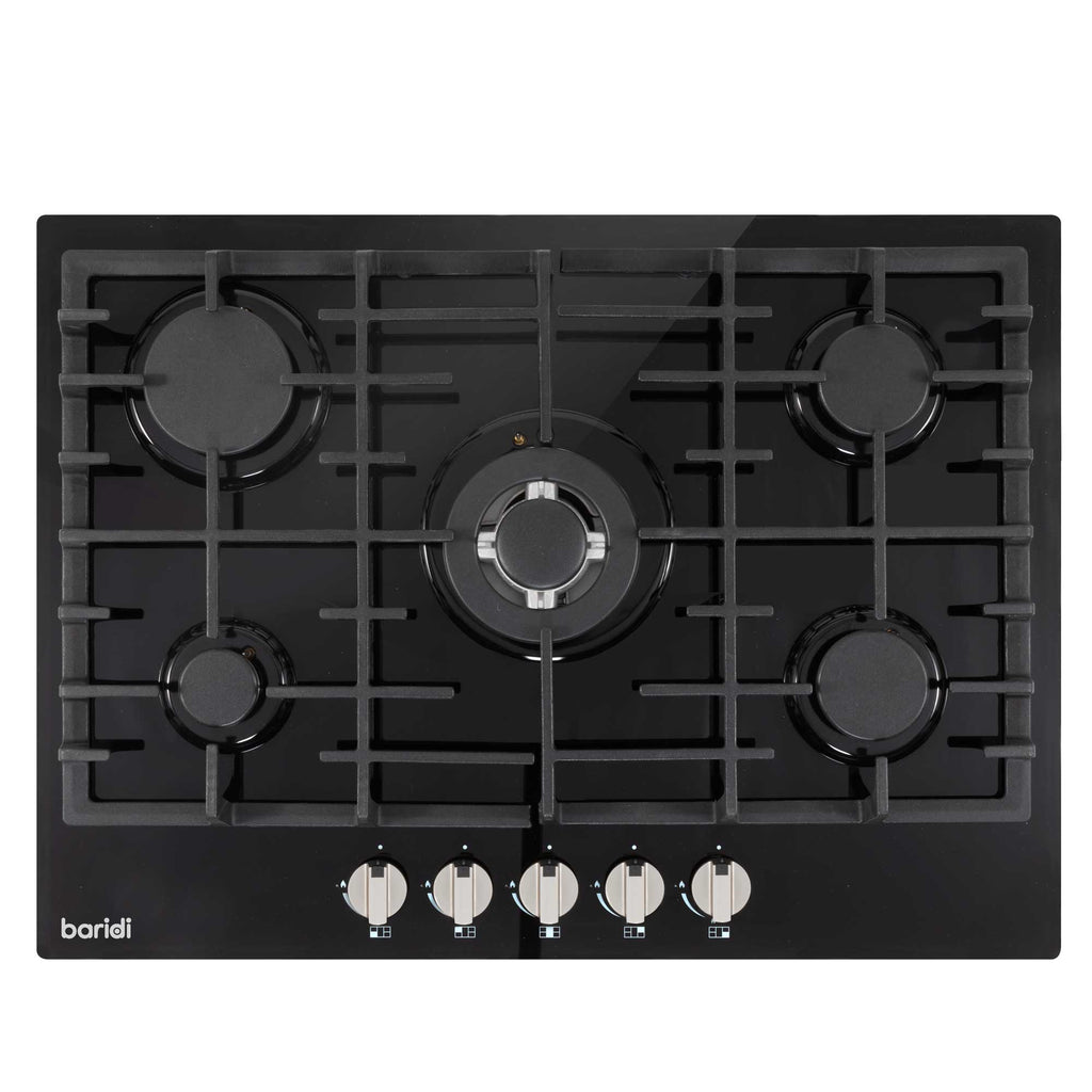 This gas hob features five versatile burners that allow you to cook multiple dishes at once, accommodating various heat requirements with ease. Its high cooking power, with a total output of 11kW, ensures efficient and speedy heating, perfect for reducing overall cooking times and achieving high-temperature cooking. Central to its design is a dedicated wok burner, providing the intense heat necessary for stir-frying and other high-temperature cooking techniques, making it an excellent choice for fans of Asian cuisine. The hob is constructed with durable cast iron pan supports, which offer stable and safe cooking while enhancing the longevity and resilience of the appliance. Adding a modern touch to your kitchen, this sleek black glass gas hob melds contemporary style with high-performance functionality. Please note, for safety reasons, any installations or repairs related to gas must be conducted by a Gas Safe registered engineer, as failing to do so can void the warranty.