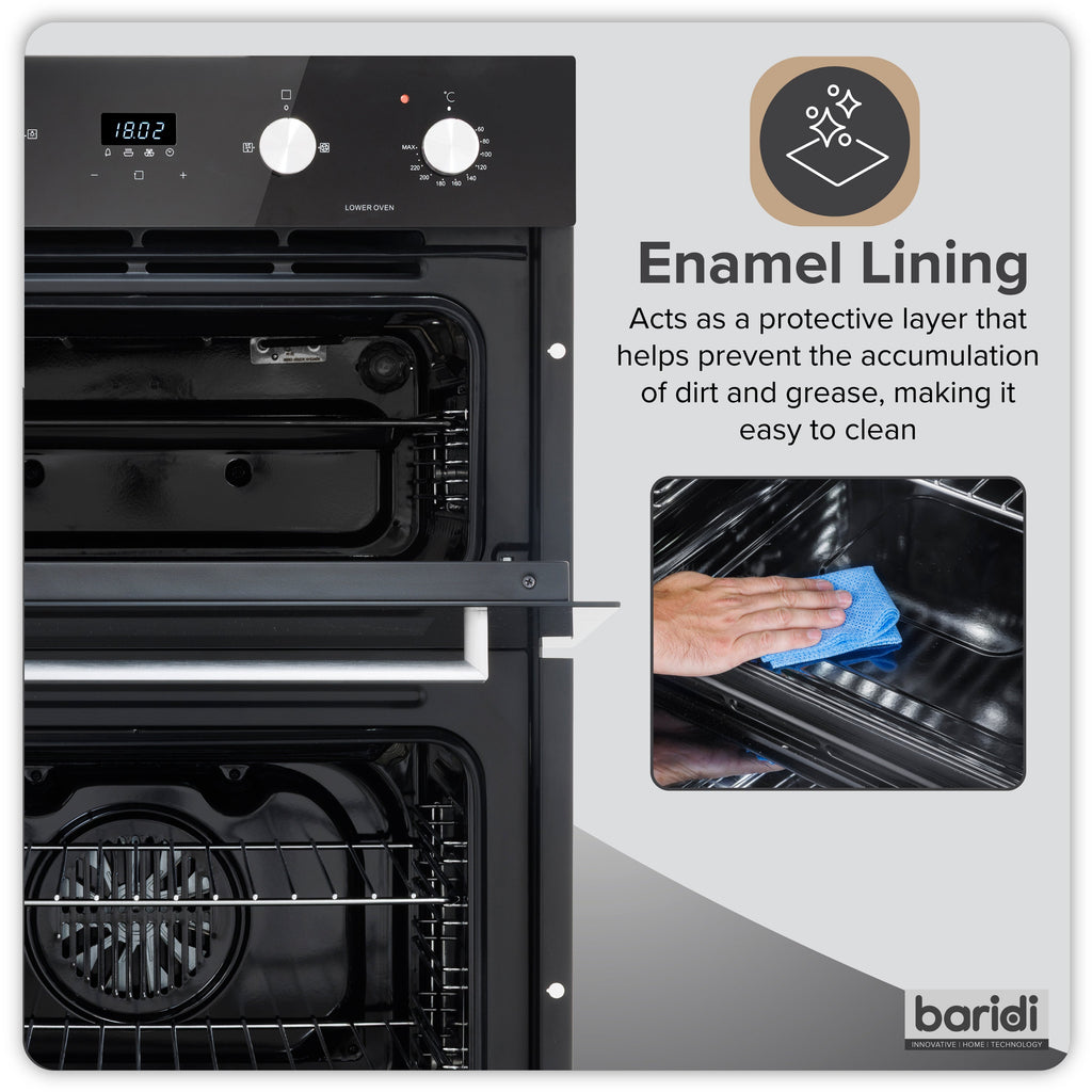 Baridi 90cm 88L Built-In Double Oven, Capacity, Energy Rating A, Black Glass – DH279