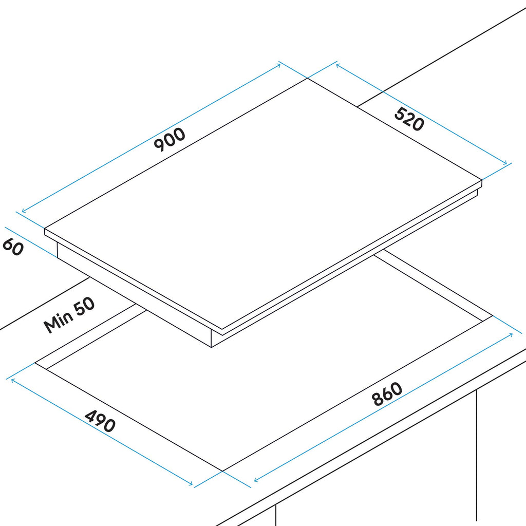 The Baridi induction hob is a powerful and efficient cooking solution, offering an impressive 9300W output across five independently controlled zones. With nine power settings and an intuitive slider touch control panel, adjusting the heat is simple and precise. Each cooking zone can be managed with an integrated timer ranging from 1 to 99 minutes, giving you complete control over your cooking times. For added safety, the hob includes a child lock function. The hob's boost feature allows you to enhance a selected zone's power by 20%, ideal for rapid boiling and high-temperature cooking. Thanks to quick heat induction technology, this hob heats iron, stainless steel, or alloy pans rapidly and more efficiently than traditional gas or ceramic options. By heating only the pan, it conserves electricity and reduces energy costs, while its surface cools quickly after use, enhancing kitchen safety. Measuring 900 x 520 x 58mm, though not supplied with a mains plug, the hob requires hard-wiring and fits a cut-out space of 860 x 490mm. Note that it is compatible only with induction-compatible pots and pans.