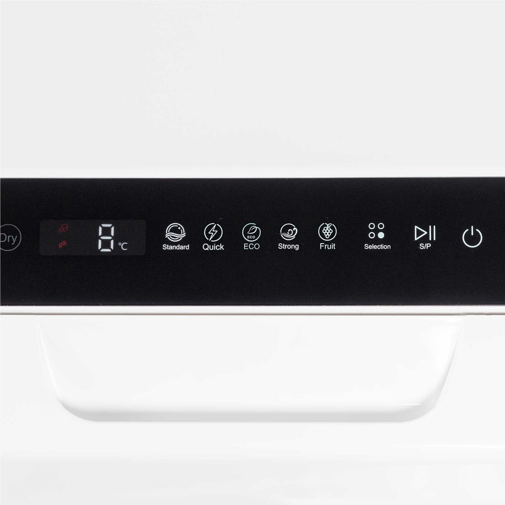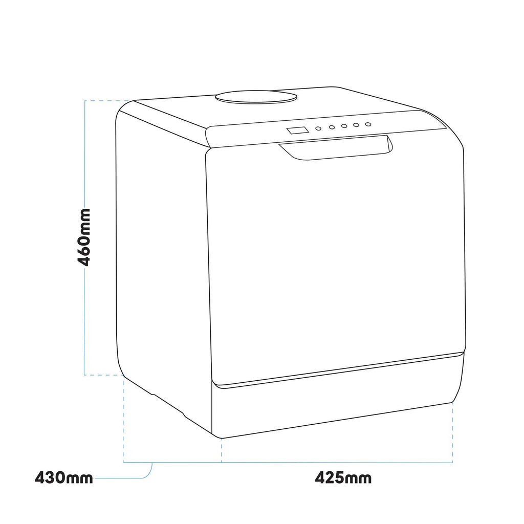 This Compact Tabletop Dishwasher delivers powerful cleaning performance in a portable design ideal for smaller kitchens, caravans, or studio flats. Measuring just 42.5 x 43 x 46 cm, it fits standard 26 cm plates while using only 5 litres of water per cycle, making it both efficient and space-conscious. Its adaptable setup allows you to operate it using the built-in water tank or connect it directly to a faucet—perfect for flexible use in temporary or permanent spaces. Five wash programmes, including Standard, Rapid, Intensive, ECO and Fruit Cleaning, cater to everything from lightly soiled glassware to heavily used pots and pans. The intuitive LED display and touch controls make operation simple and wipe-clean easy, while the sleek, modern design complements a wide range of interiors. With its compact footprint and thoughtful functionality, this mini dishwasher brings convenience and cleanliness to even the smallest of kitchens.