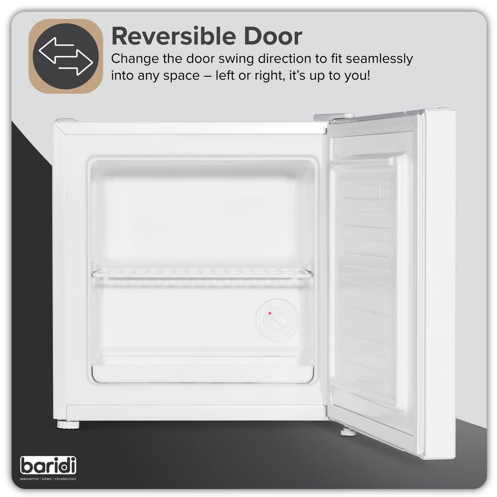 This compact appliance serves both as a freezer and a refrigerator, making it a versatile addition to any home, especially those with limited kitchen or living space. Its space-saving design allows it to fit snugly on your countertop, thus freeing up room in your main freezer. You can easily adapt it to your kitchen layout with its reversible door, which lets you choose to open it from the right or left side. With a 4 Star Freezer rating, it safely maintains a temperature of -18°C, ensuring long-term storage of frozen goods. Despite its robust performance, this appliance operates quietly at a maximum of 38 decibels, which is roughly equivalent to a soft whisper, and its Energy Efficiency Class E rating makes it cost-effective to run. Measuring 475 x 445 x 495mm, it is designed to maximize utility while minimizing space consumption.