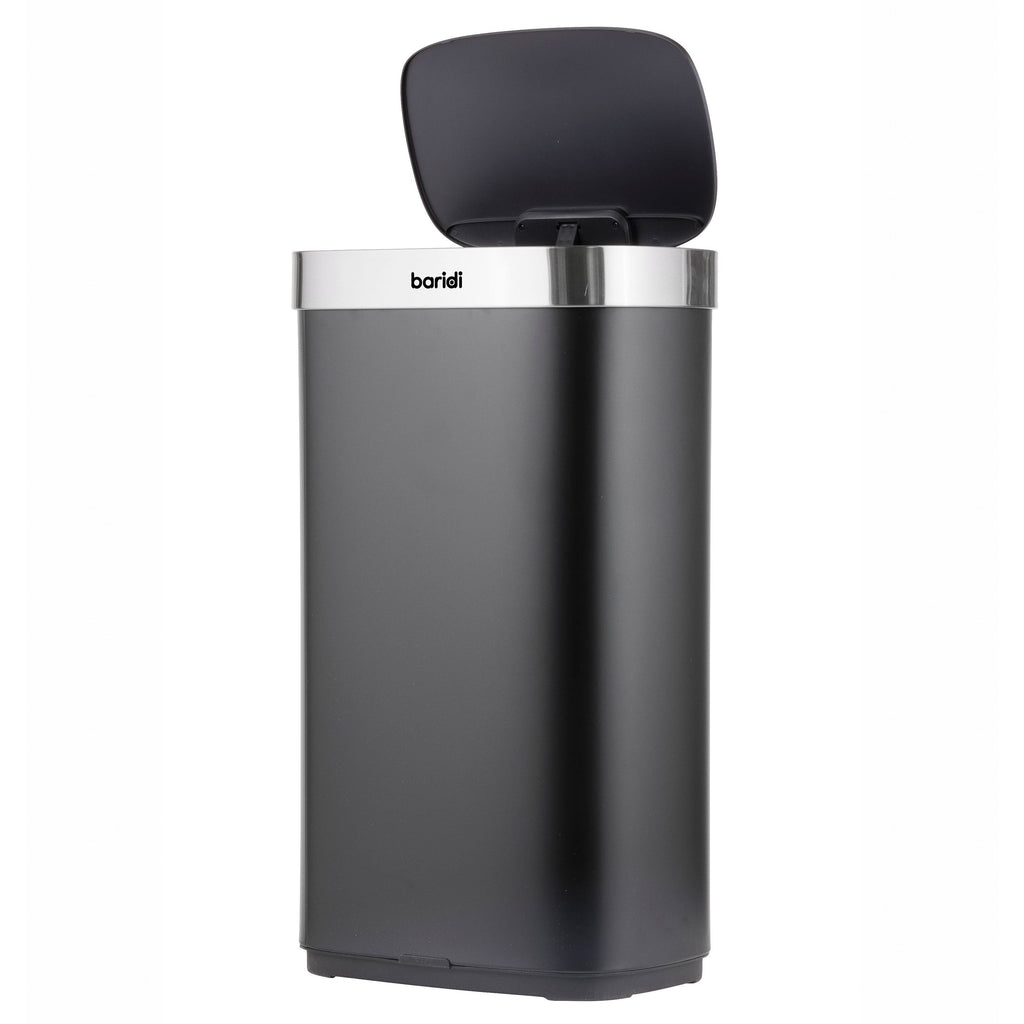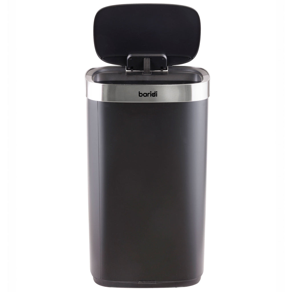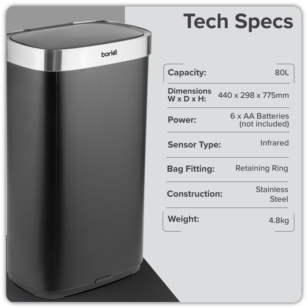 The 80L Motion Sensor Bin DH283 offers a practical and hygienic solution for high-traffic kitchens, offices, or communal spaces. Its generous 80-litre capacity accommodates substantial daily waste while maintaining a compact footprint of 44 x 29.8 x 77.5 cm. The infrared motion sensor enables touch-free operation, automatically lifting the lid for hands-free disposal—particularly useful when handling food or cleaning tasks. Battery-powered with six AA cells (not included), it operates without cables, keeping floors tidy and clutter-free. A secure ring retainer ensures bin liners stay firmly in place, concealing edges for a neat, streamlined appearance. With its sleek, wipe-clean surface and effortless functionality, this bin combines convenience, style, and efficiency for busy environments.